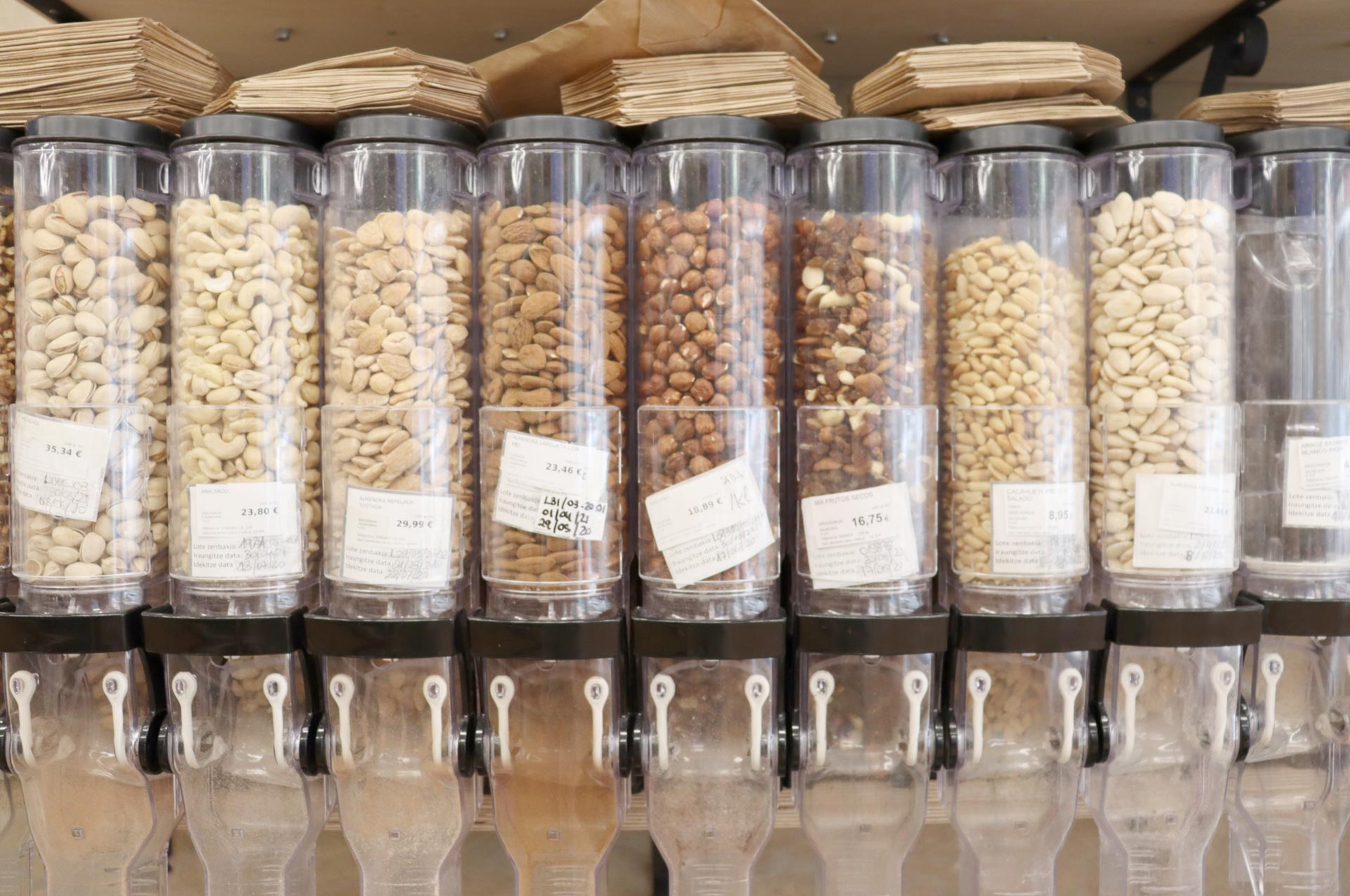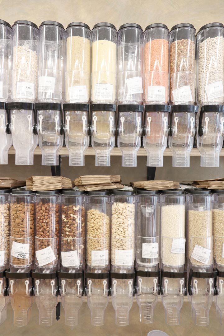 Entre los productos a granel pude ver verduras y fruta, legumbres y frutos secos y lavavajillas. El hecho de que sea un producto a granel implica que no está envasado, por lo tanto, puedes llevar tu propia bolsa de tela o puedes optar por las bolsas de papel que ofrece la tienda. Si tu idea es comprar lavavajillas a granel lo ideal es que lleves un envase vacío de casa para rellenarlo allí. Otra característica de los productos a granel es que puedes elegir tú la cantidad, lo que te permite hacer la compra en función de tus necesidades.